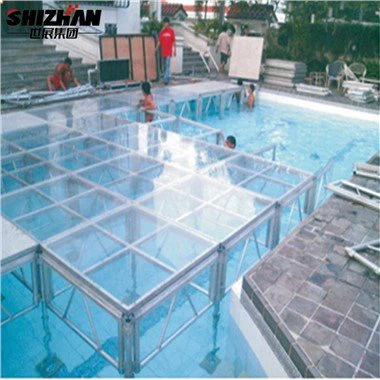 A SHIZHAN 18 mm vastag mobil hordozható üvegszínpadot gyakran használják esküvőkön, beltéri és kültéri medencés partikon és különféle fényshow-kon, hogy tökéletes teljesítményt nyújtsanak. Erőssége és alacsony ára miatt népszerű.